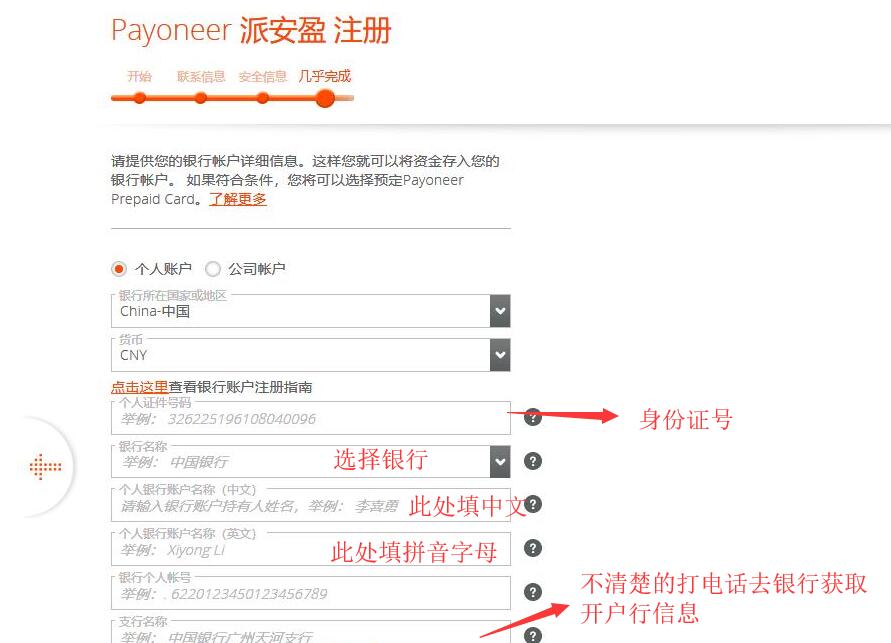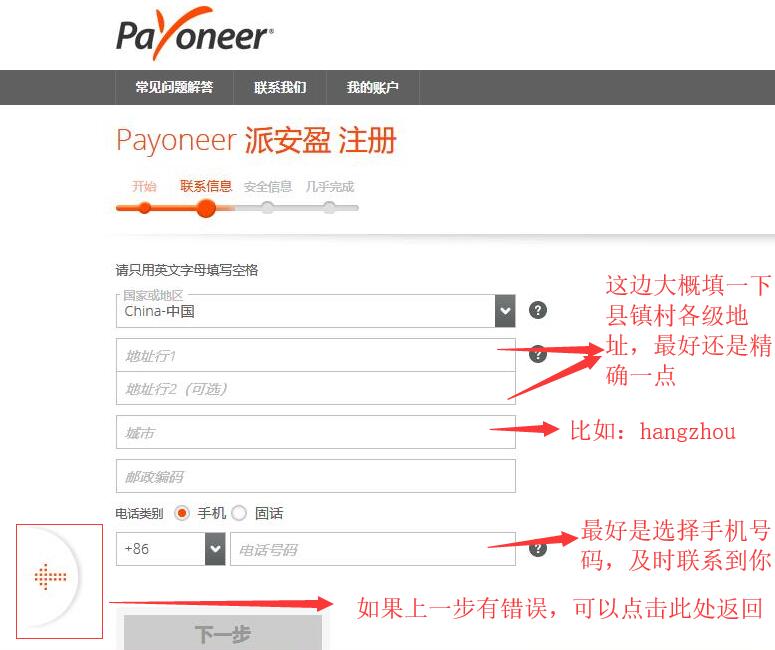 接下来就是按照官方注册流程,四步完成Payonner的注册。