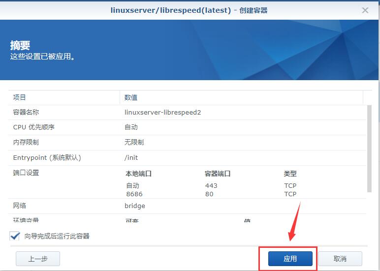 docker run --restart=always -d -p 9988:80 linuxserver/librespeed:arm64v8-latest