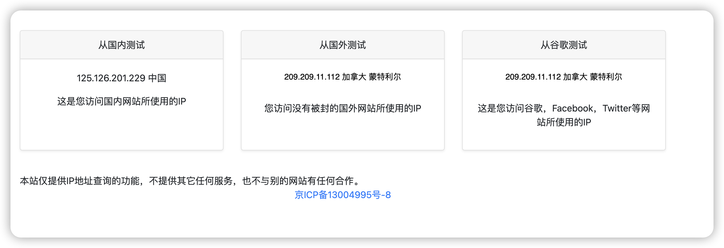 (1)https://www.ip111.cn/ 最好全局模式,三个结果都是国外的