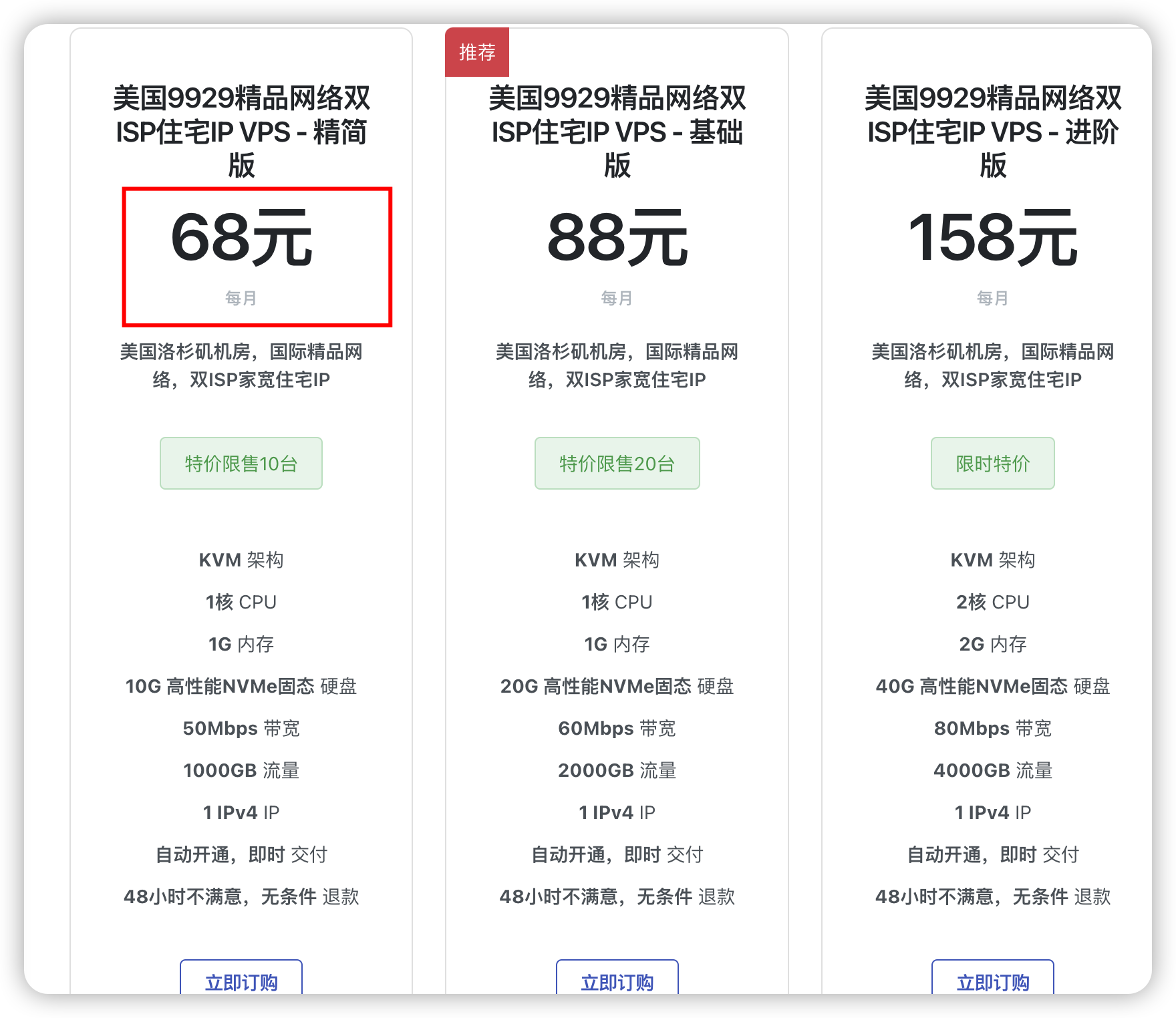 此处是购买链接 ,选50或者70都可以,如果买了以后分配的ip不是38段位建议退了,24小时内可以退。因为有人说38开头的比较好,具体如何大家自己尝试