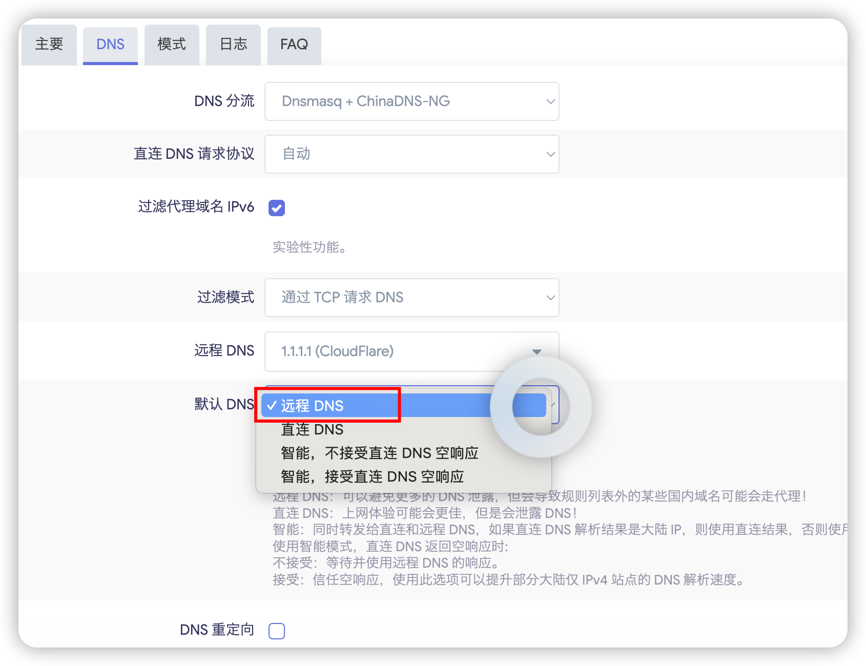 就是passwall上面有个dns部分,建议选择远程DNS,不要智能。